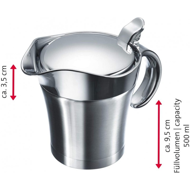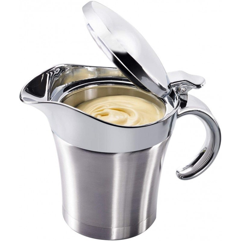 Salsera de acero inoxidable con doble pared y tapa.