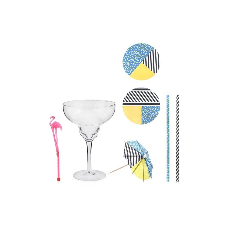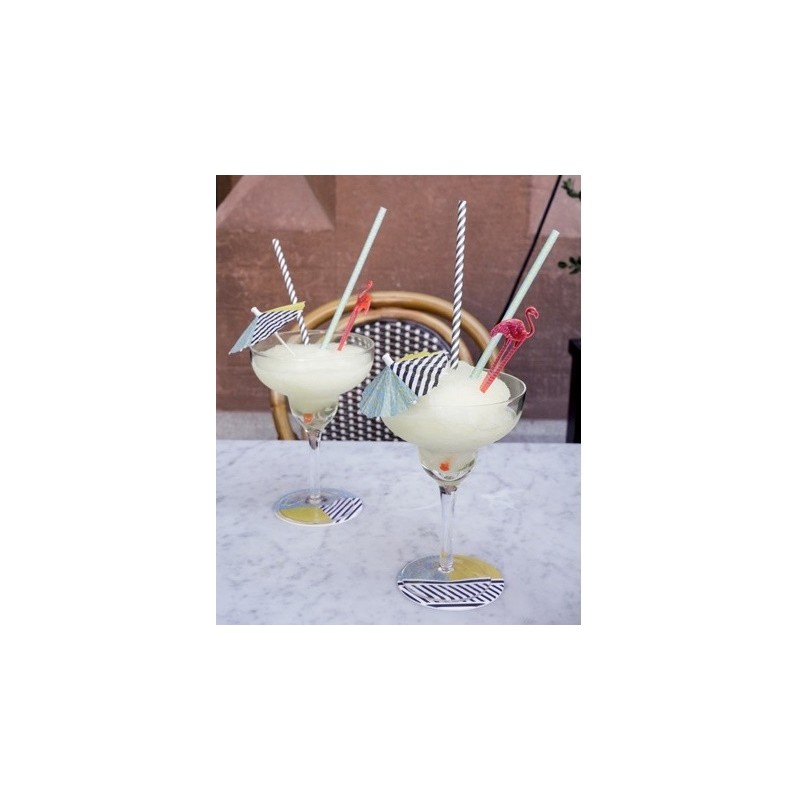 Set de 2 copas, posavasos, pajitas, sombrillas y 2 agitadores de flamencos para presentar de forma divertida un autentico margarita