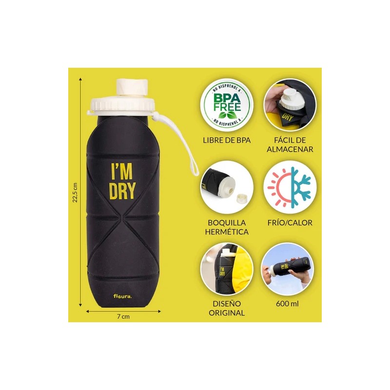 Tiene un tamaño de 22,5 cm de alto x 7 cm de diámetro y cuando está cerrada tiene un tamaño de 6,2 cm de alto x 7 centímetros de diámetro