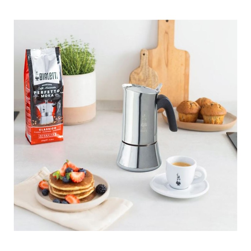 La cafetera Bialetti Venus tiene un diseño inconfundible y elegante. Además, garantiza una alta calidad gracias a la válvula de seguridad patentada que facilita su limpieza.