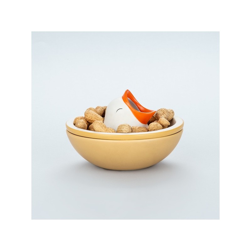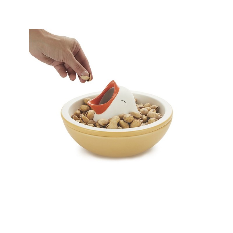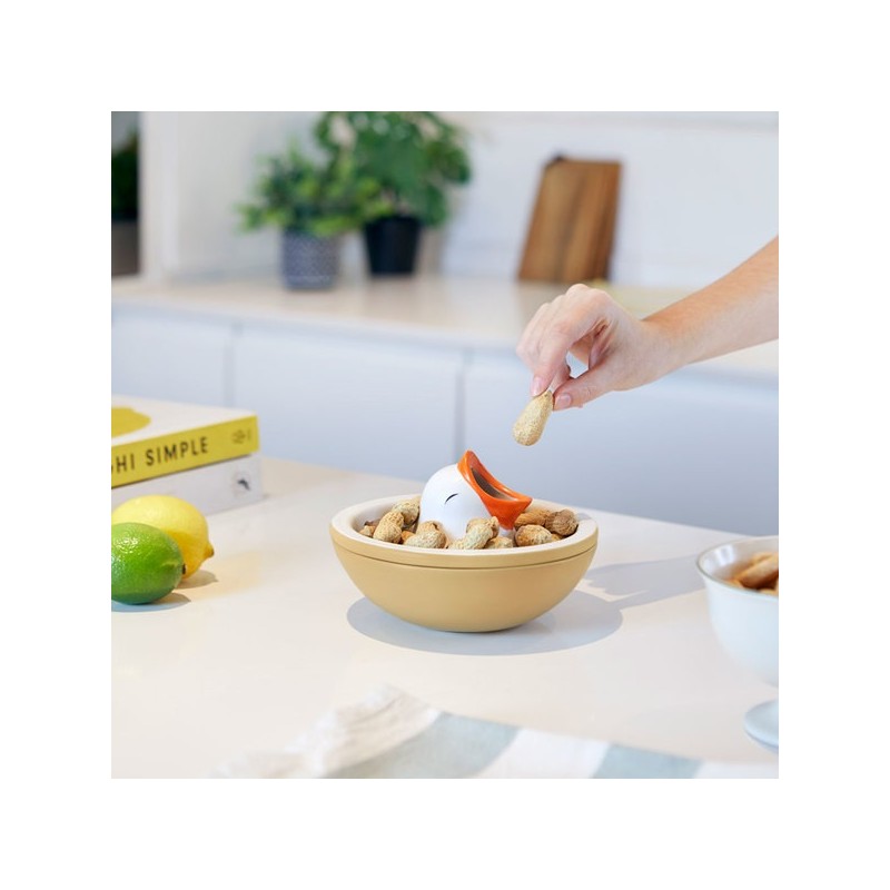 BONITO Y FUNCIONAL. Con forma de nido con pajarito. Las cáscaras y huesos se almacenan en su interior sin quedar a la vista.