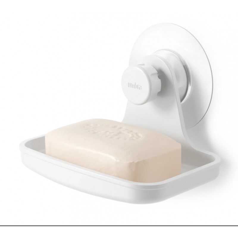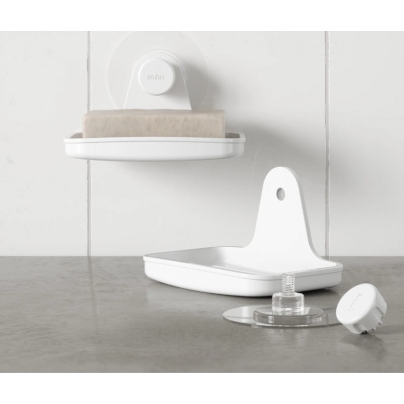 Las jaboneras tienden a acumular agua, con la jabonera adhesiva Umbra no tienes que preocuparte porque los orificios de drenaje integrados evitan que el agua se acumule en el fondo de la jabonera.
