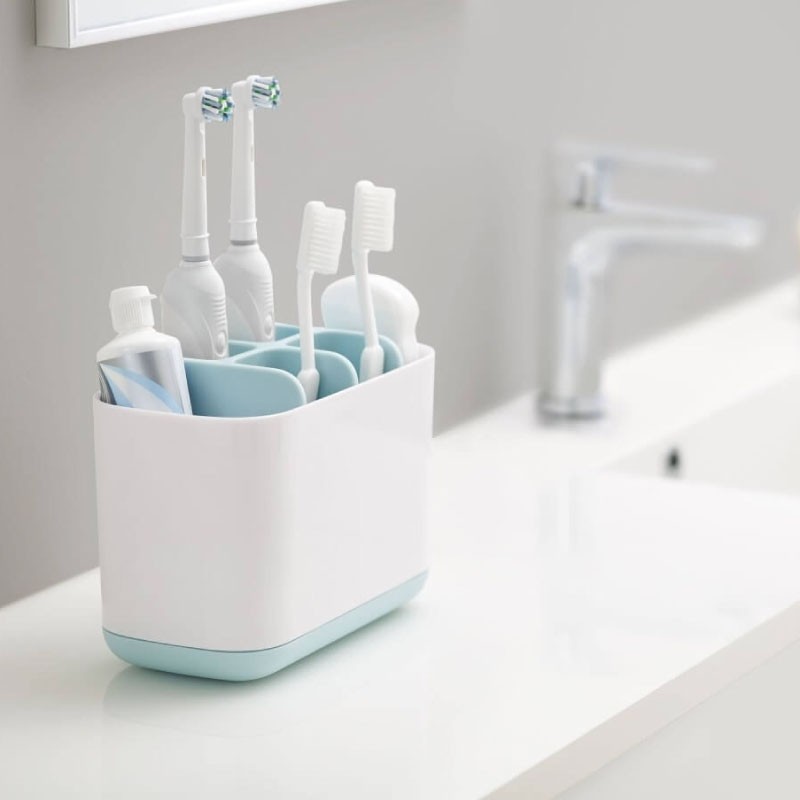 6 compartimentos para los cepillos (incluso eléctricos) y para los tubos de pasta o cualquier utensilio relacionado