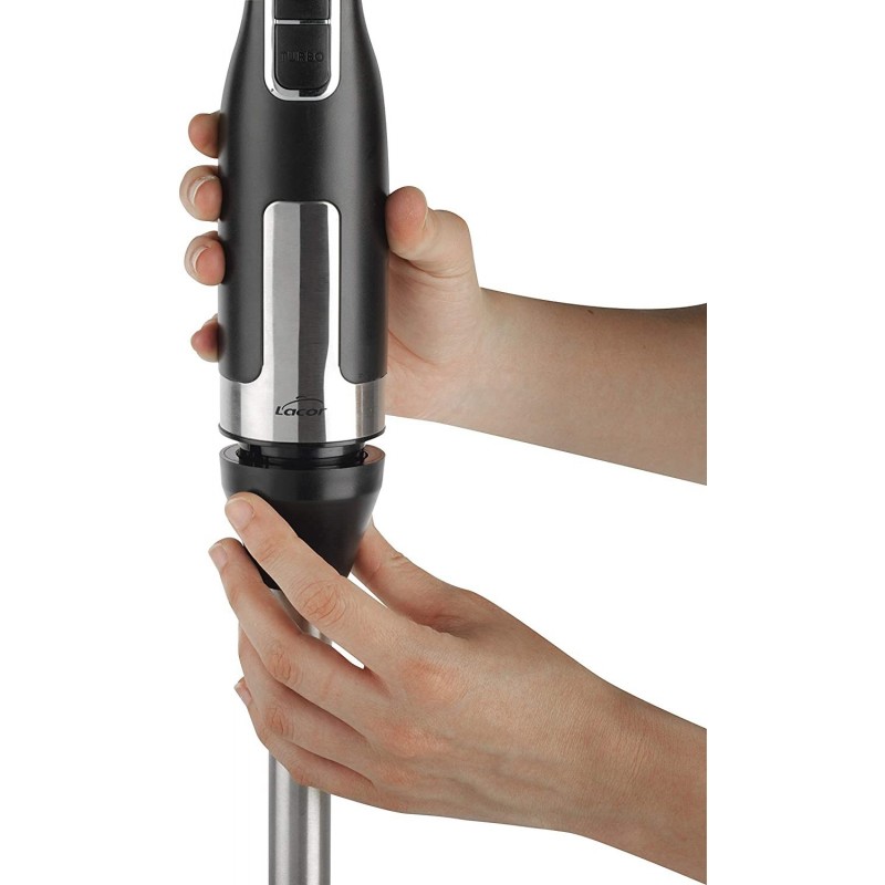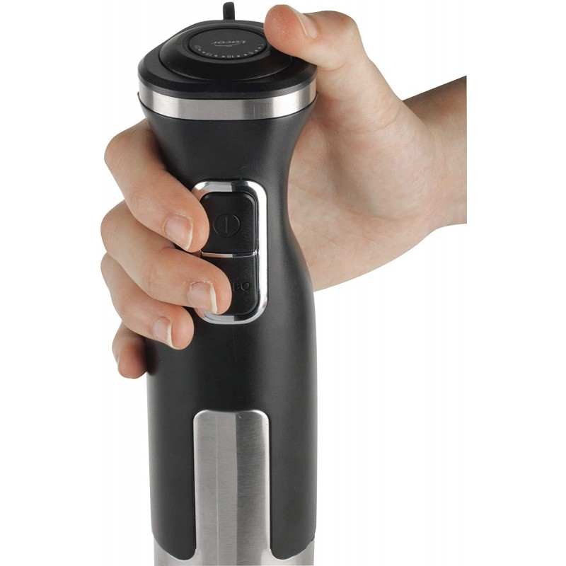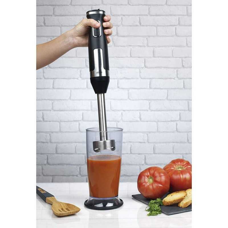Mango ergonómico y antideslizante para garantizar un agarre seguro, firme y cómodo, incluso si se trabaja con la máxima velocidad Pie del batidor exclusivamente diseñado como protección contra las salpicaduras