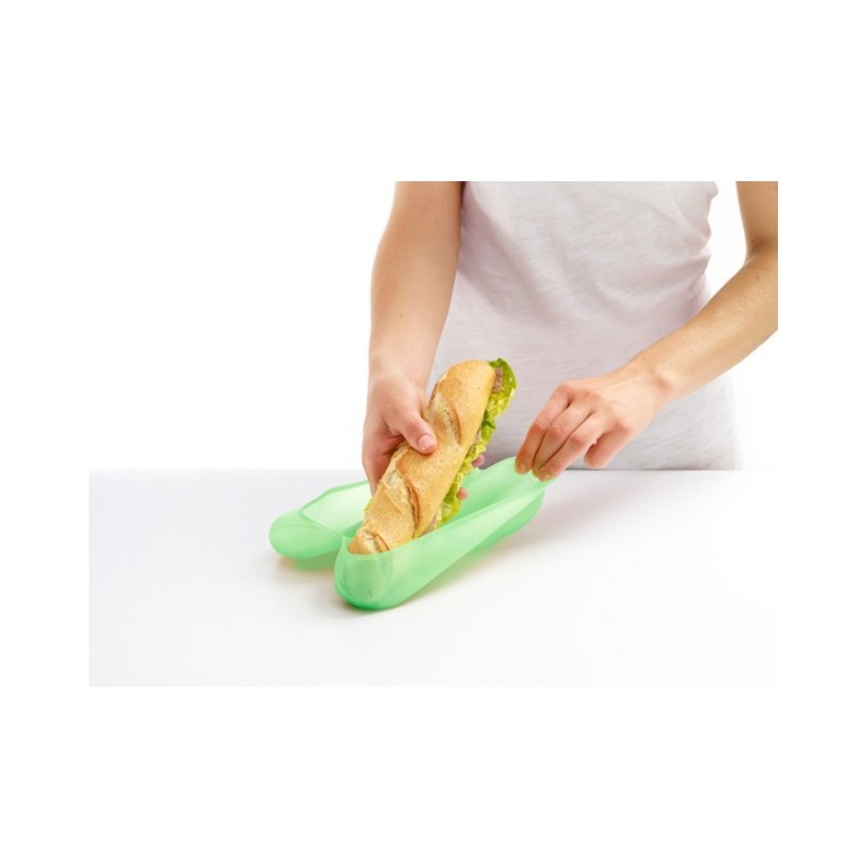 Funda reutilizable de 100% silicona platino que permite envolver de manera fácil y ecológica tus bocadillos evitando el uso de papel film o papel de aluminio.