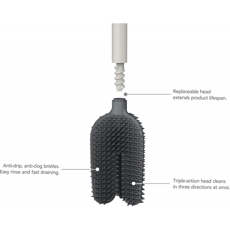 El cabezal del cepillo de triple acción limpia en tres direcciones a la vez