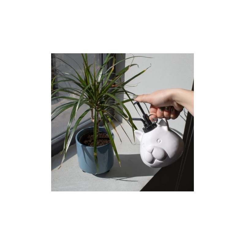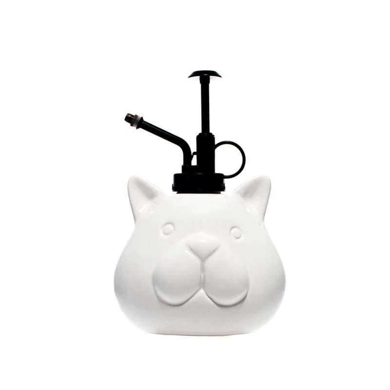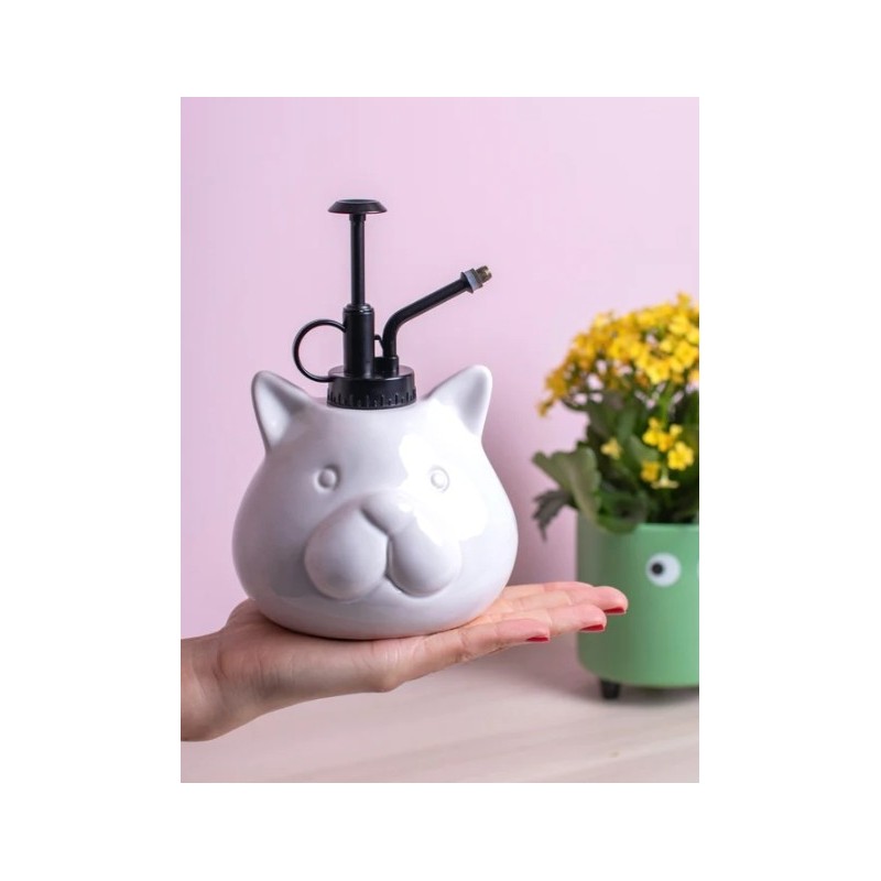 Dimensiones: tiene un tamaño de 19 cm de alto (10,7 cm el gato y 8,3 cm el pulverizador) y su diámetro en la parte más ancha es de 12 cm
