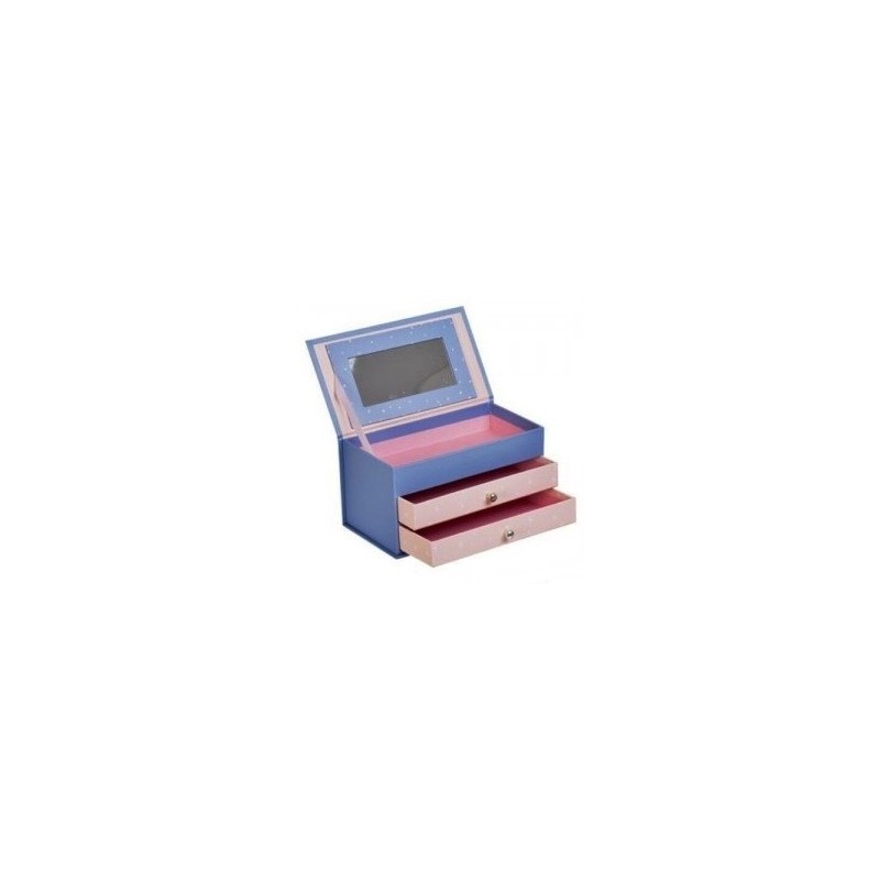 Joyero de cartón con 2 cajones y compartimento en la parte superior con espejo.