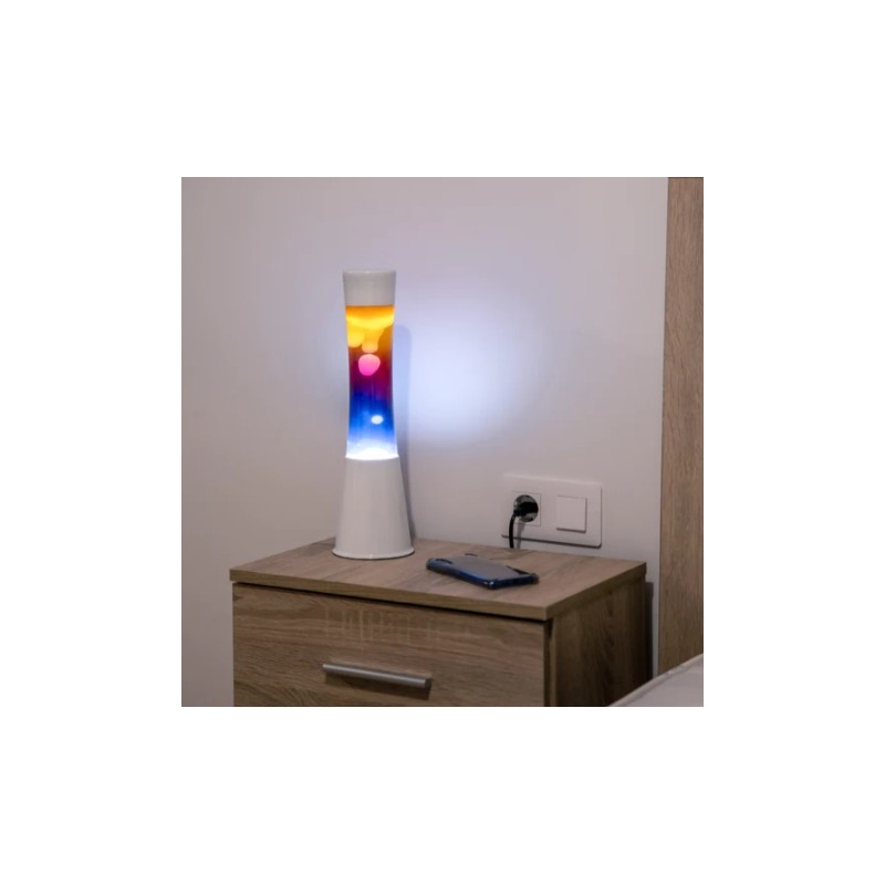 La base se enchufa a la corriente y se enciende la bombilla con el interruptor.