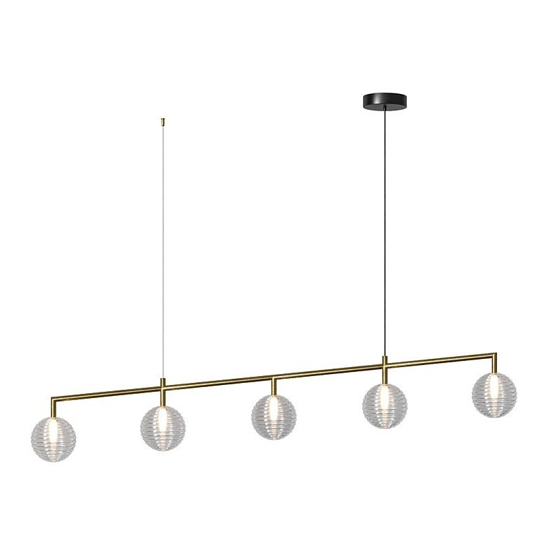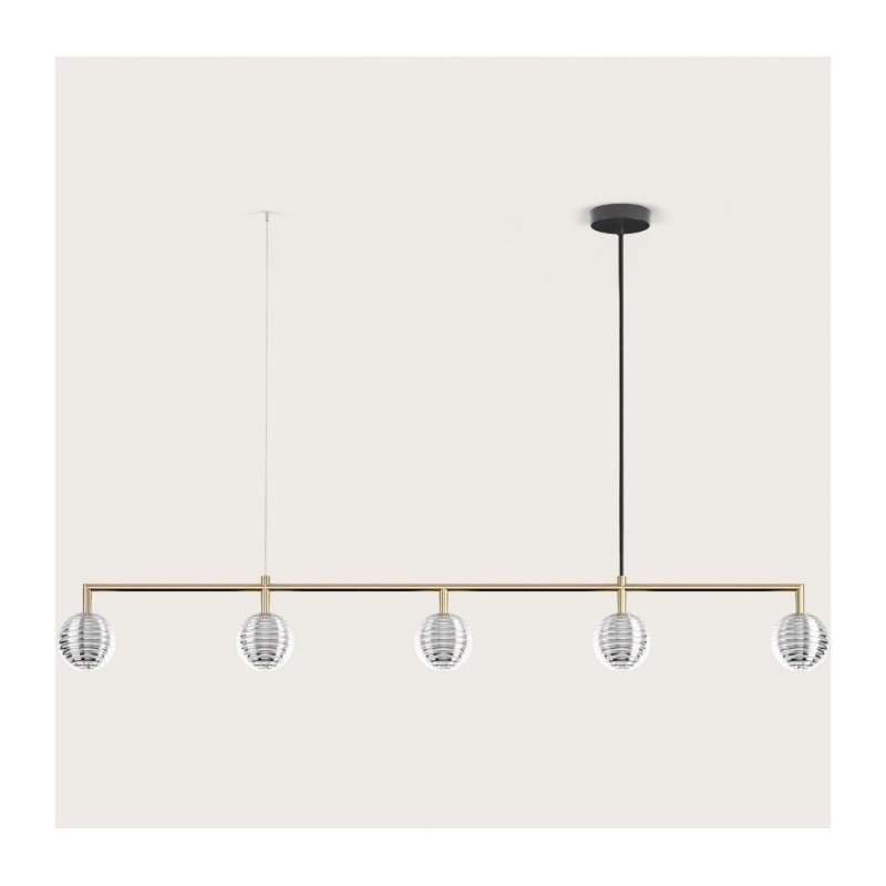 lámpara de techo con tulipas de Cristal estriado transparente con la estructura en metal Negro mate o en Oro mate.Bombillas incluidas 5 x G4 LED 3W 2700K
