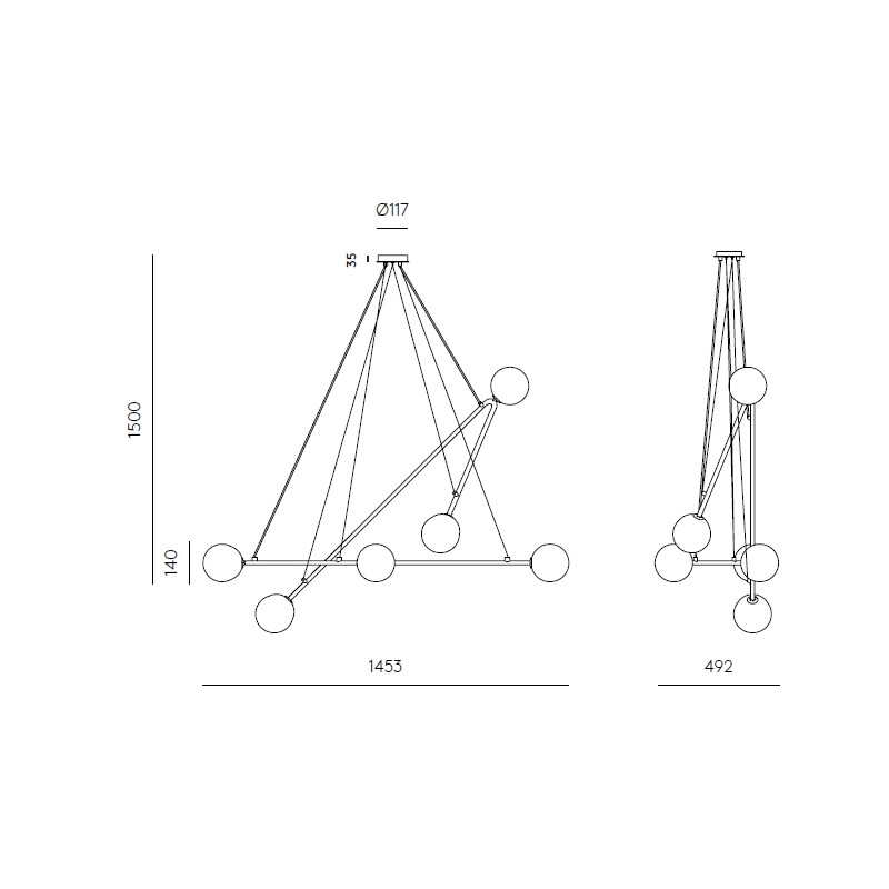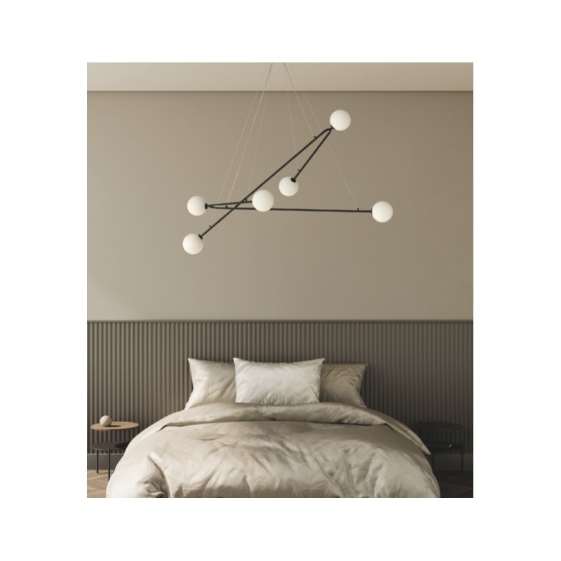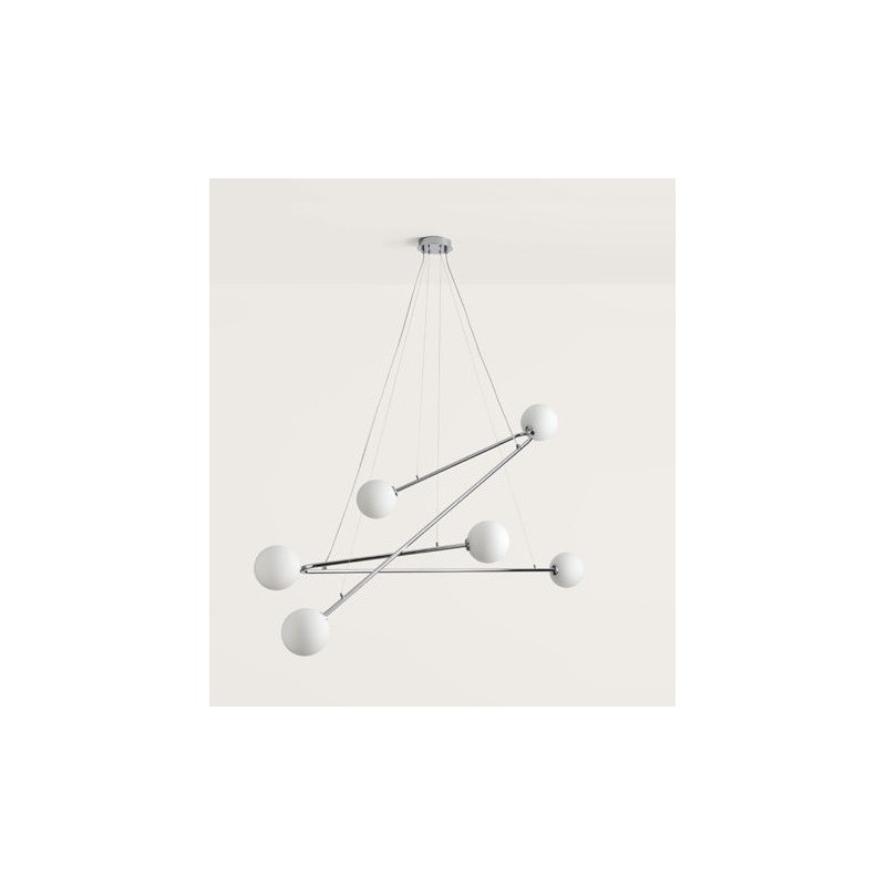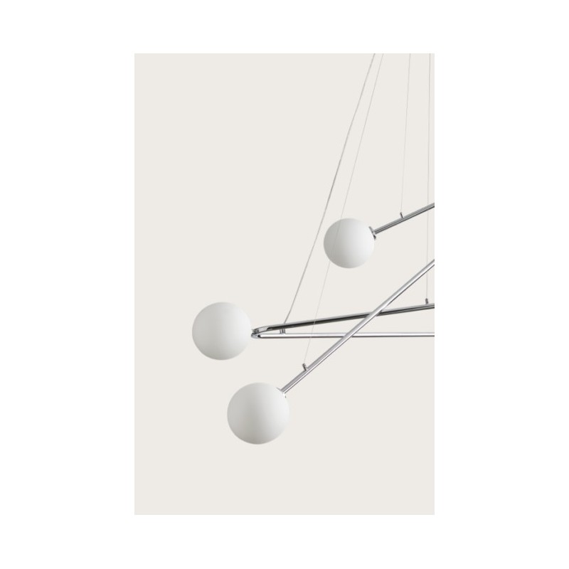 Lámpara de techo que gracias a sus cables tensores permite modificar su forma elevando o descendiendo los brazos