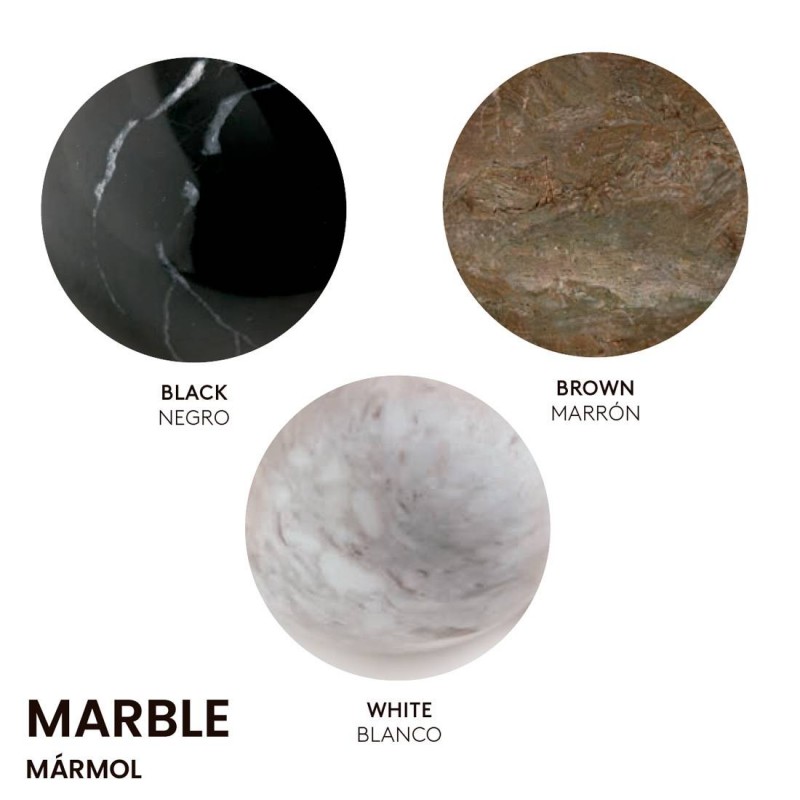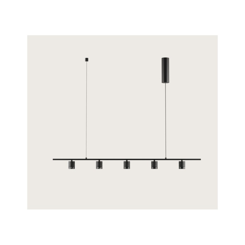 El diseño se compone de cinco pequeños cilindros de acero estriado con detalles en mármol disponible en 3 combinaciones: