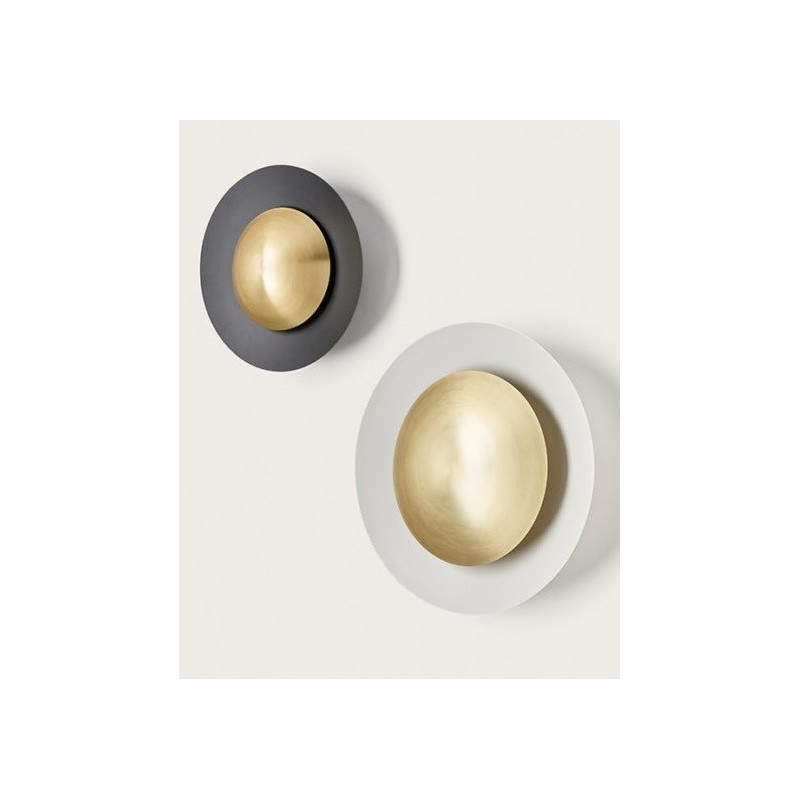 Aplique de pared formado por una cúpula exterior y un difusor central de acero con Led integrado.