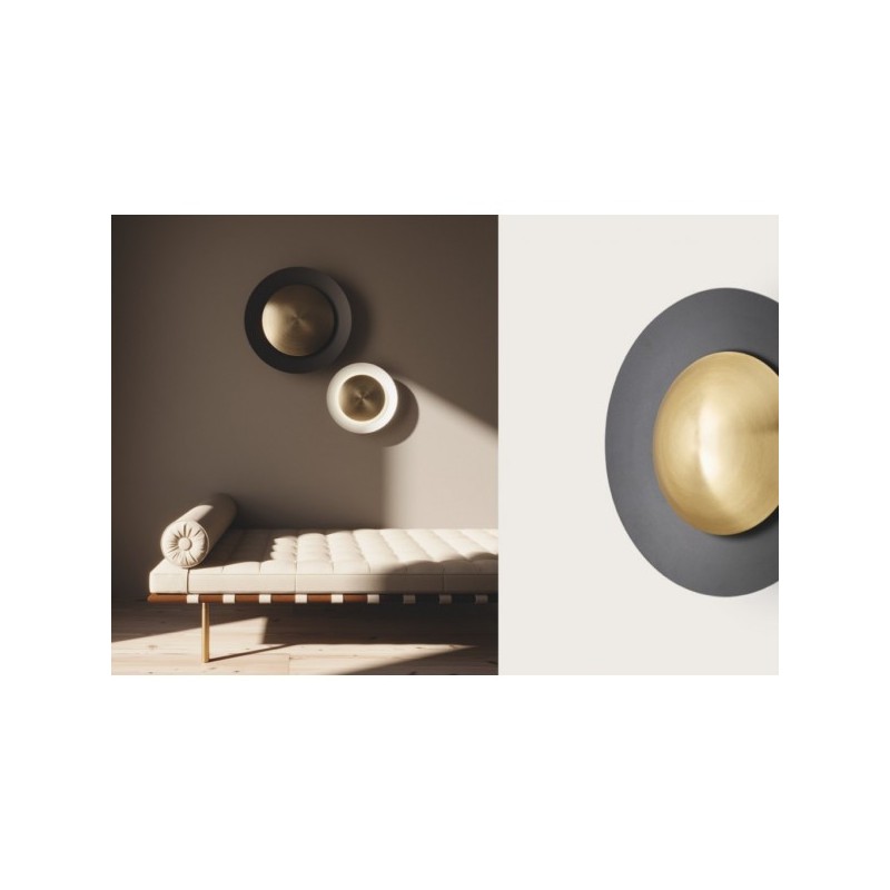 Aplique de pared formado por una cúpula exterior y un difusor central de acero con Led integrado.