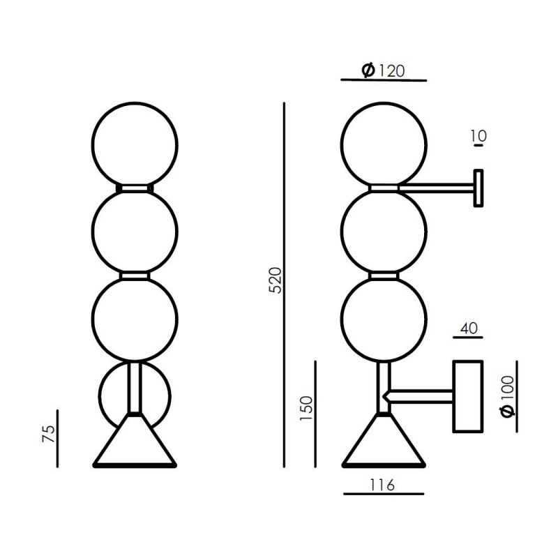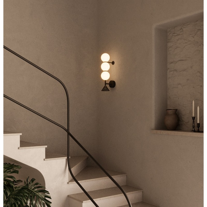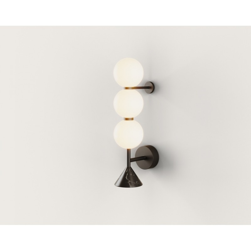 Aplique de pared formado por una estructura de esferas de cristal opal, rematada por detalles en mármol natural disponible en 2 acabados:
