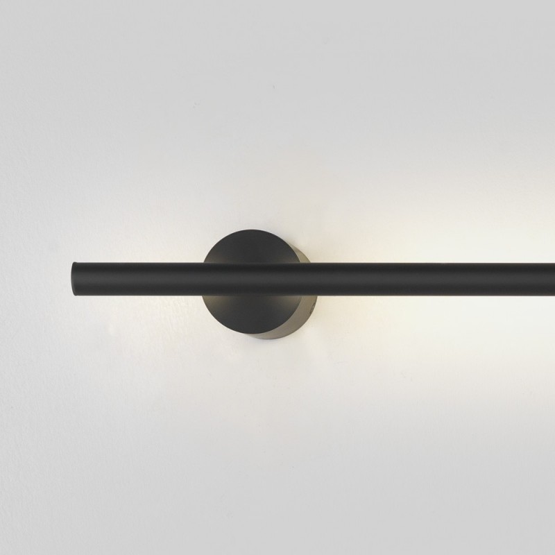 Aplique de pared de acero negro mate con tira de led integrad . Puede colocarse horizontal o verticalmente