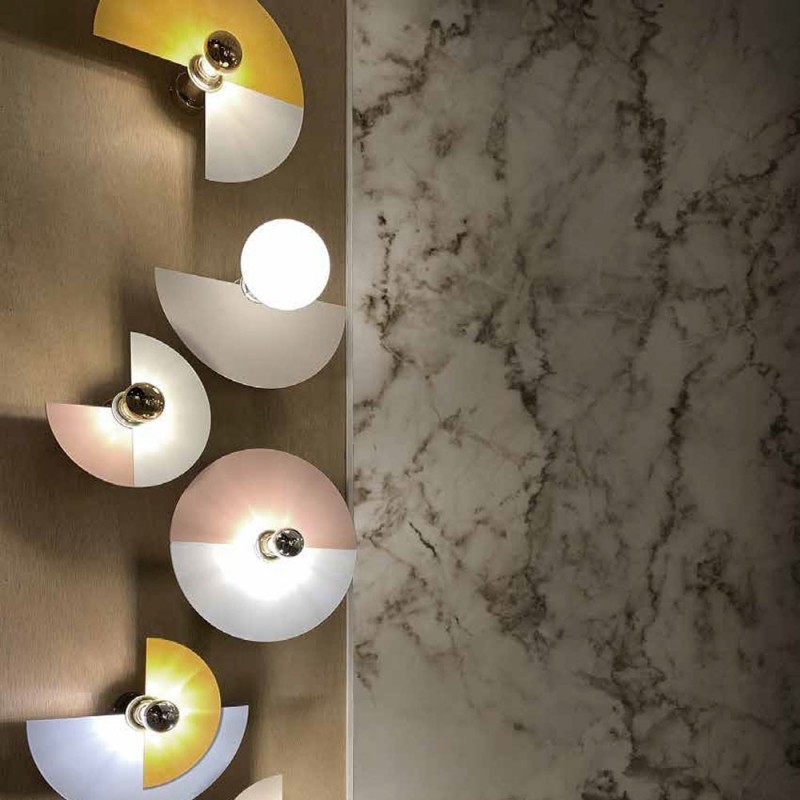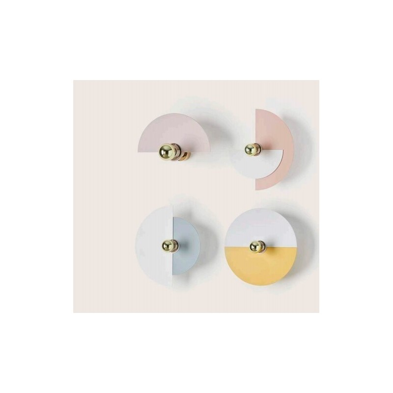 Aplique de pared formado por un portalámparas de acero acabado oro y 2 abanicos de metal.
