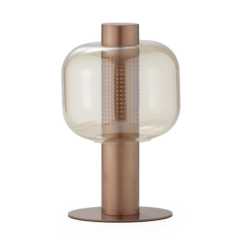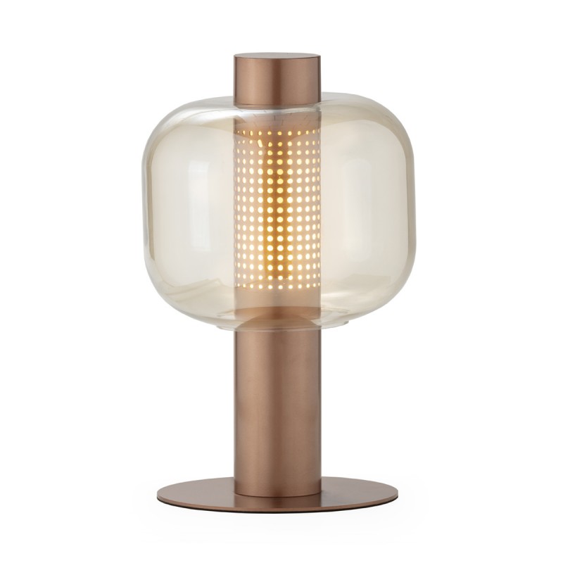 Lámpara de sobremesa disponible en 2 acabados metal marrón antique-cristal ámbar y metal dorado antique-cristal ámbar