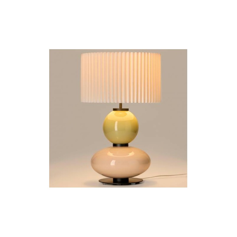 Lámpara de mesa fabricada con dos esferas decorativas de vidrio pintado a mano que puedes personalizarlas con la paleta de colores disponible.