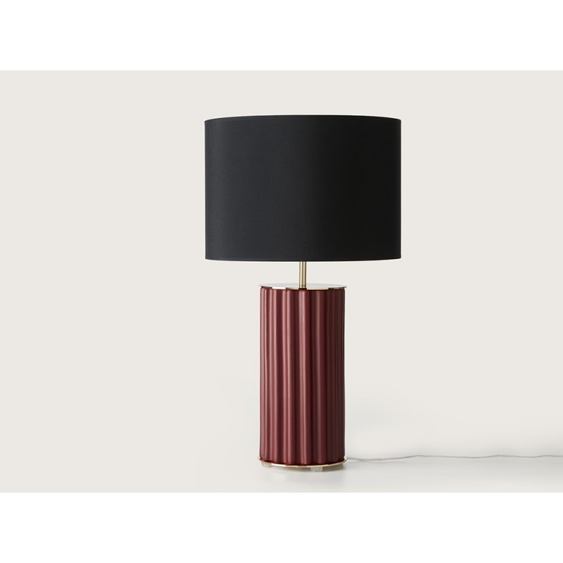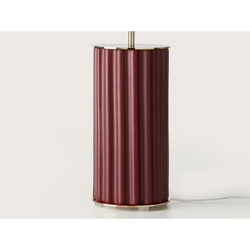Lámpara de sobremesa con base de metal dorado, pie de cerámica pintado a mano.