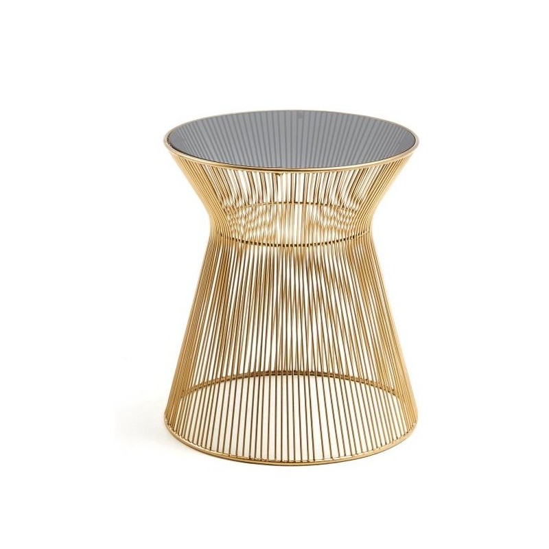 Sobre de cristal negro traslucido y estructura de hierro acabado dorado.