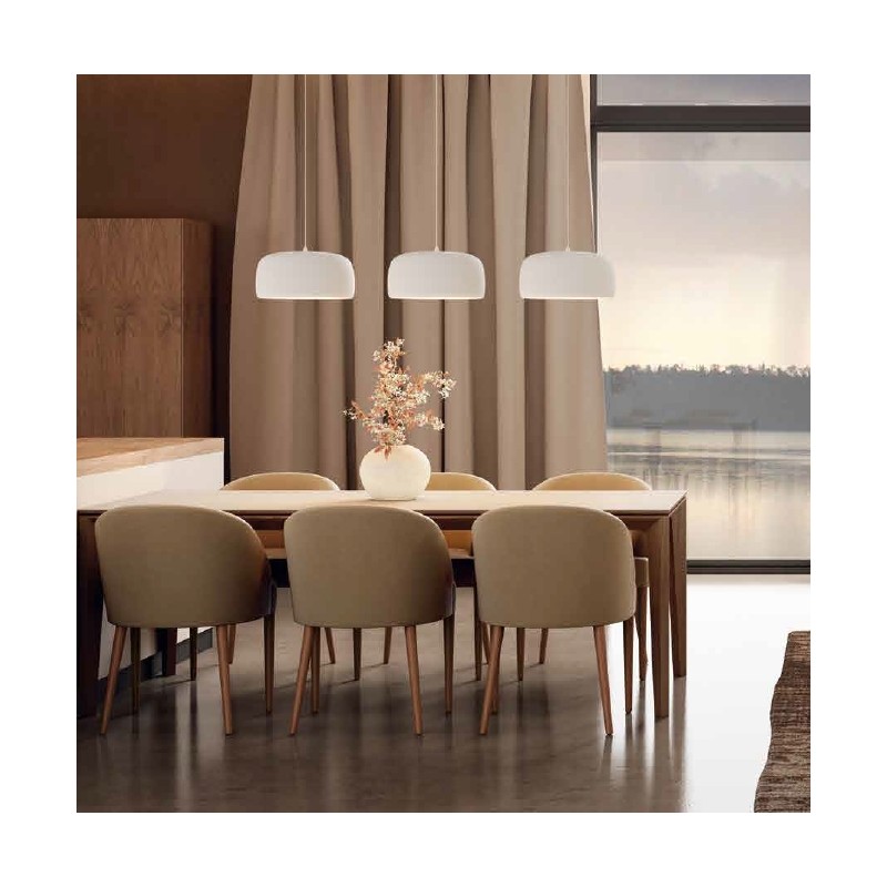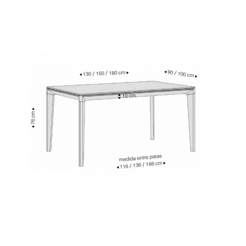 Mesa de madera de roble con tapa de porcelánico con 2 extensibles en madera de 45 cm cada uno.