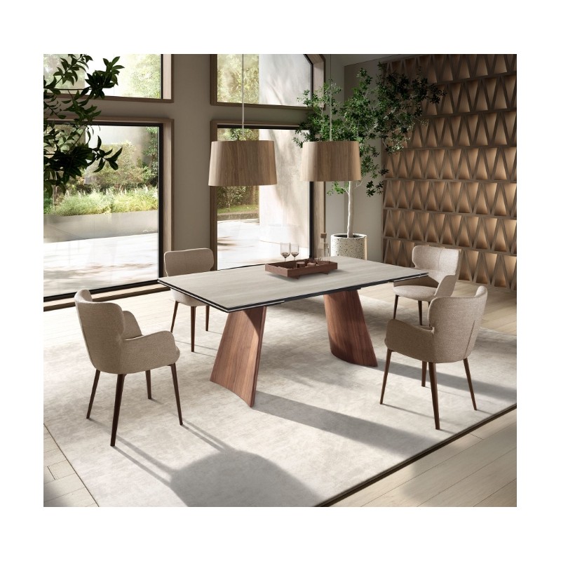 - Sus patas robustas y de carácter lineal permite combinarla con cualquier silla de nuestro catálogo, sin molestar o interferir en la comodidad de los comensales.