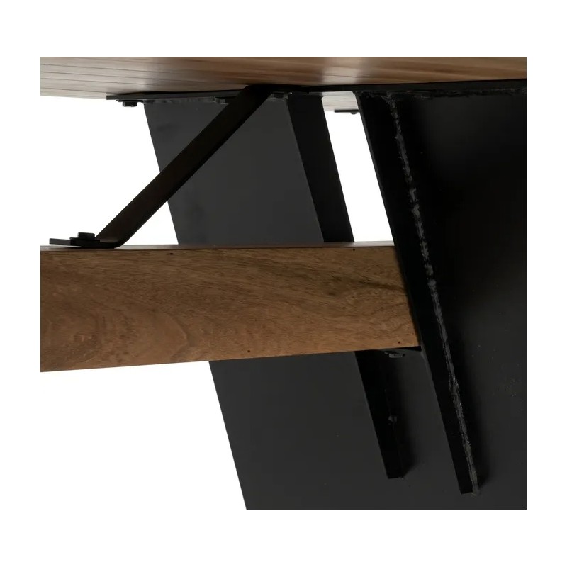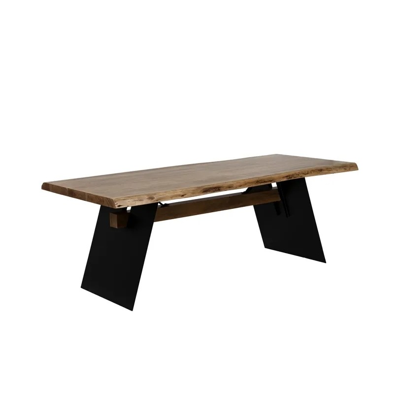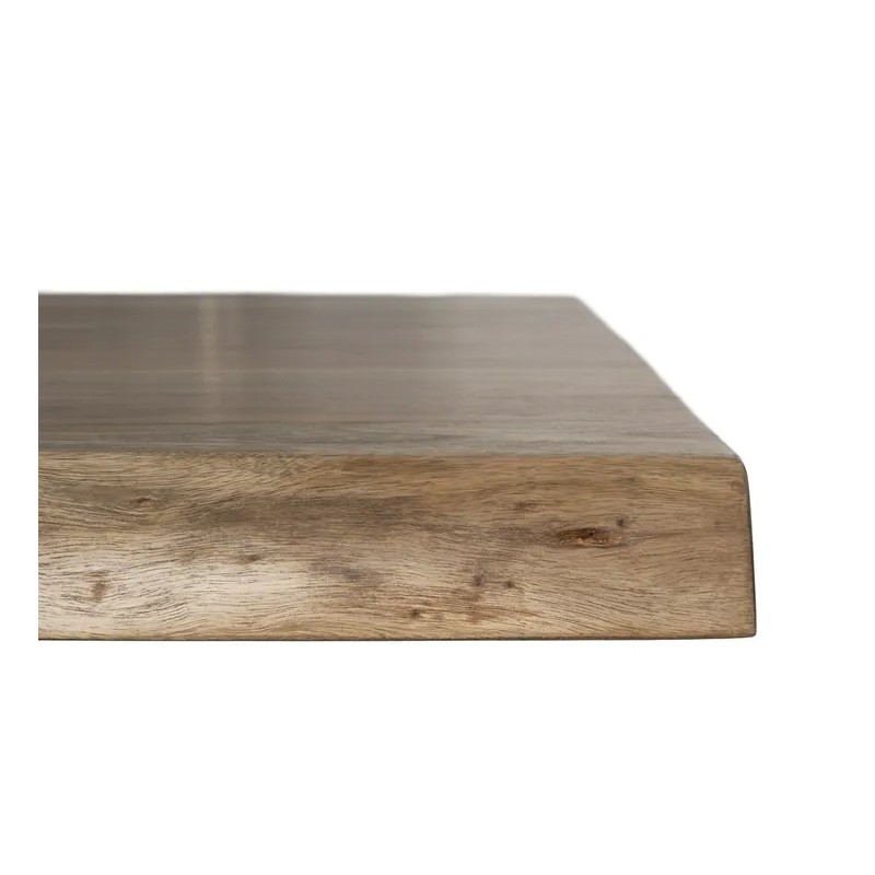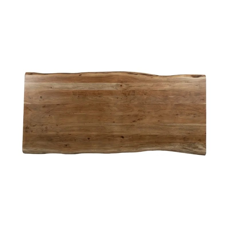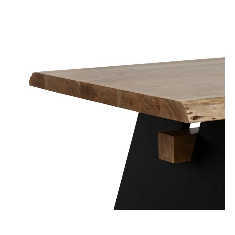 Mesa de comedor de madera de acacia natural y pies de hierro. Grosor del tablero 56 mm