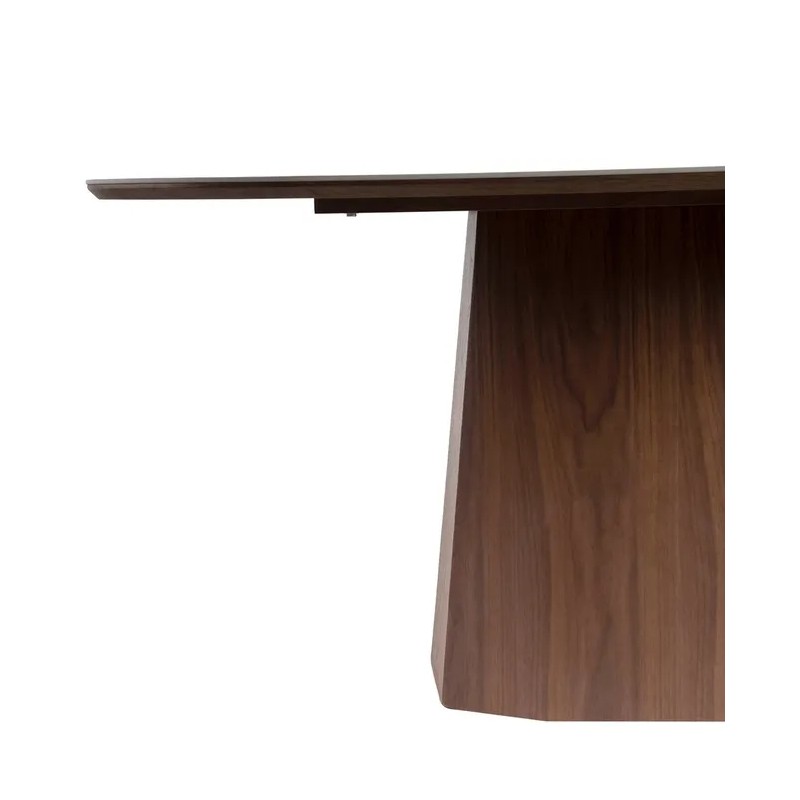 Mesa con pie fabricado en DM acabado nogal y sobre de material cerámico imitación mármol