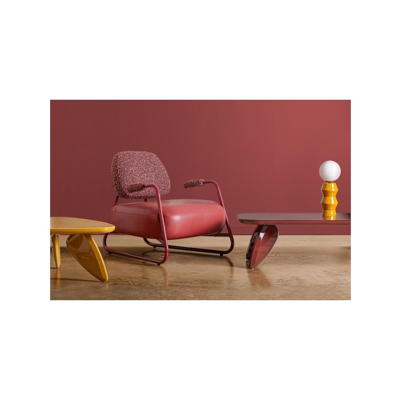 Mesa de centro con una estética orgánica y formas suaves fabricada en DM lacado en color mostaza