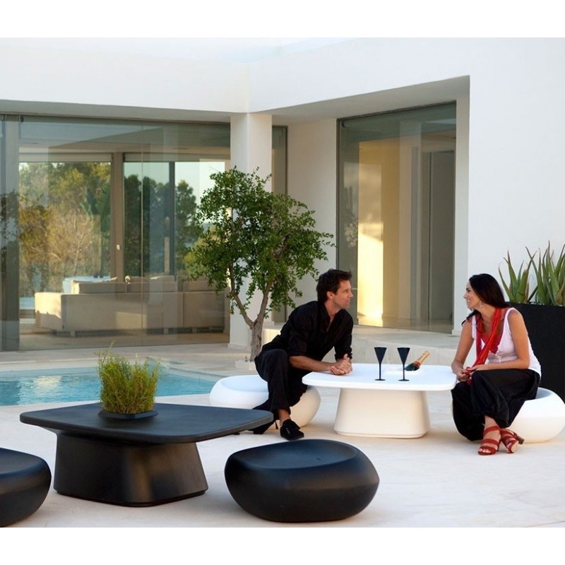 Mesa de resina de polietileno de doble cara, con hueco útil para planta o cubitera.
