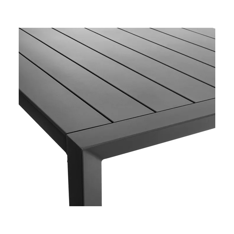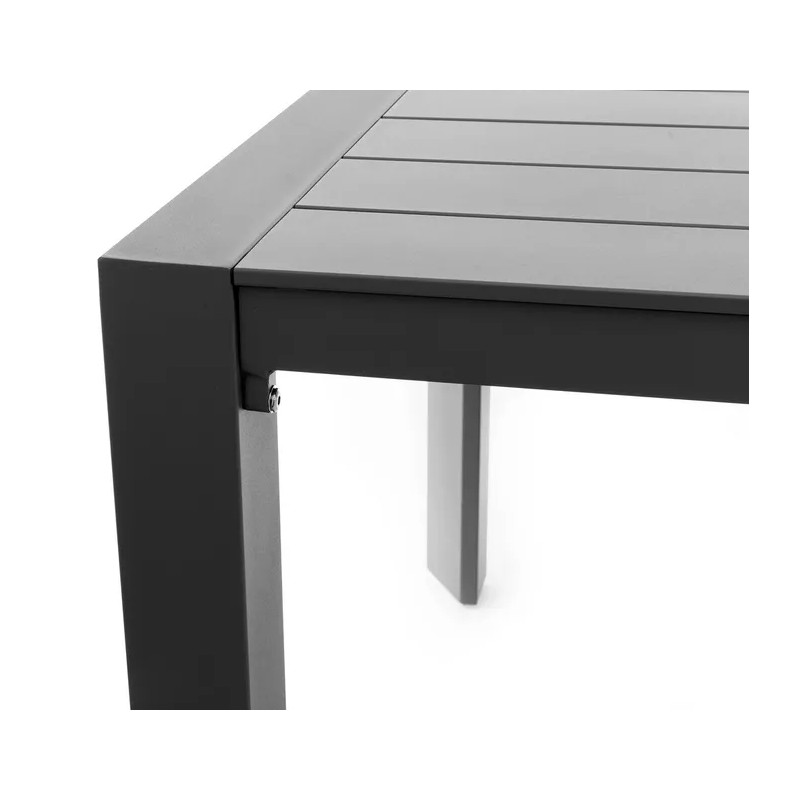 Estructura fabricada en aluminio con perfil geométrico con sobre de láminas rectangulares.