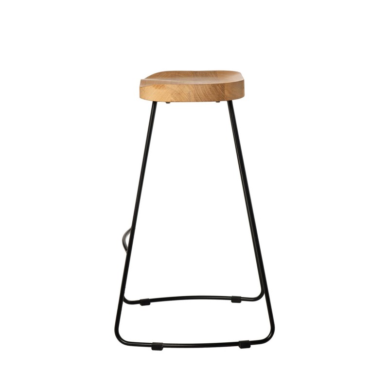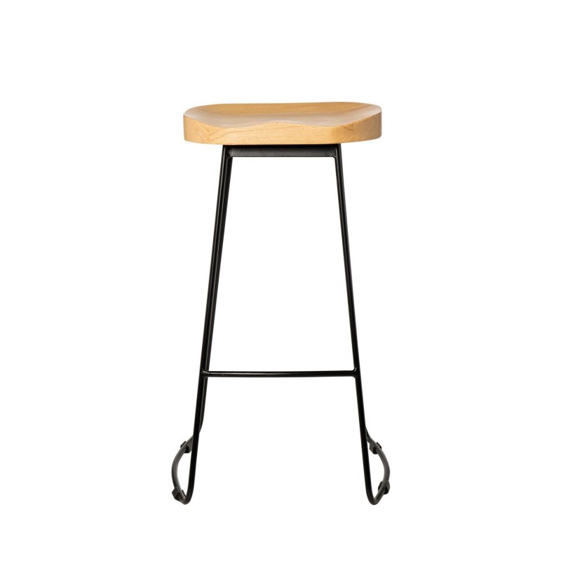 Taburete sin respaldo con asiento resistente de madera cóncavo para mayor comodidad.