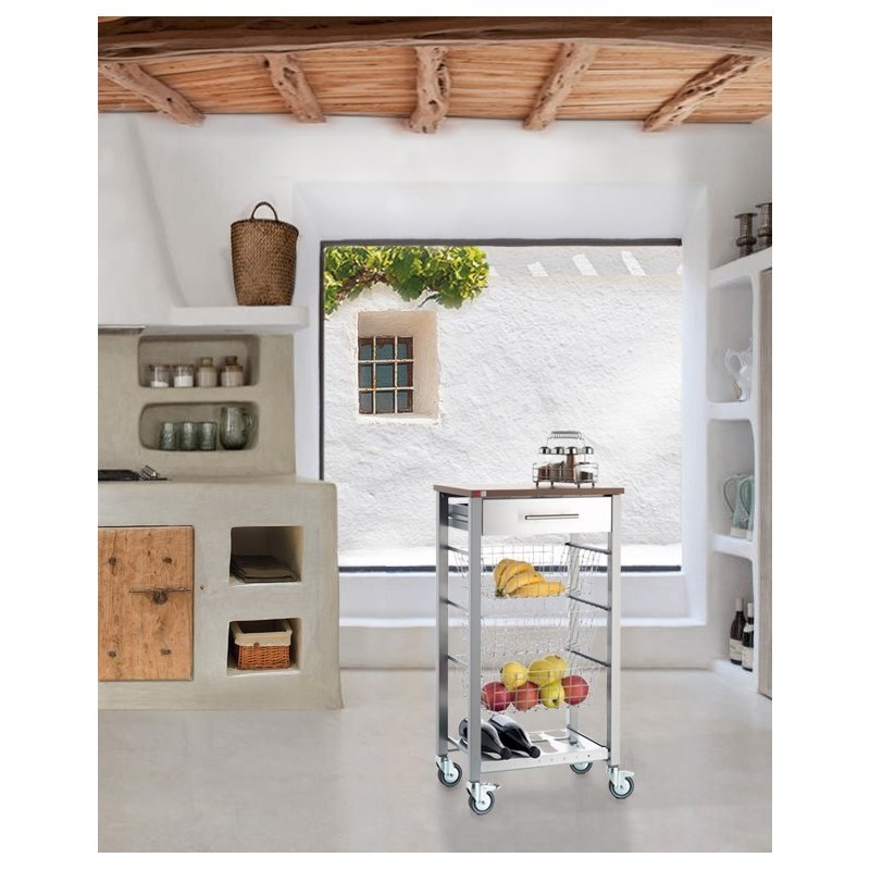 3 cestas de gran capacidad, ruedas, 1 cajón y 1 botellero.