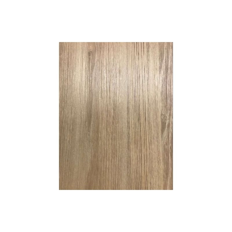 Armazón metálico en color blanco, frontal cajón inox y encimera de tablero color olmo texturado.