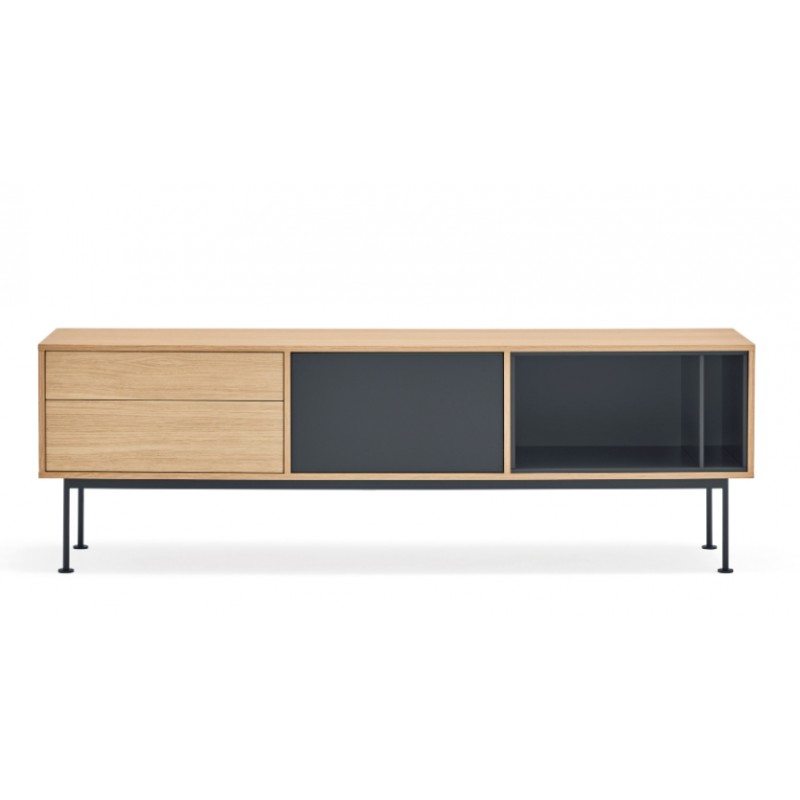 Mueble de Tv fabricado en chapa de roble dispone de 2 puertas correderas y 2 cajones.