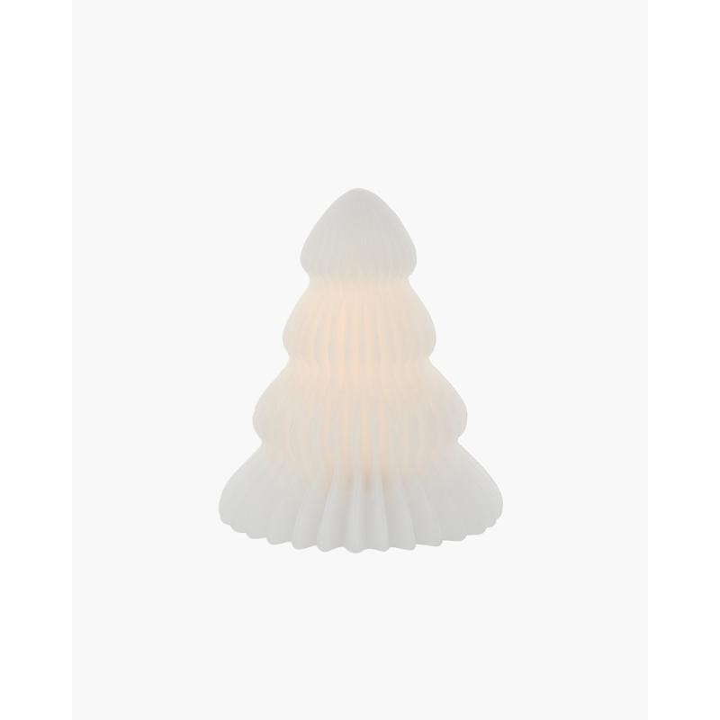 El árbol de Navidad Claire está hecho de cera real. En el interior del árbol hay una luz LED y, cuando se enciende, irradia un color blanco cálido.