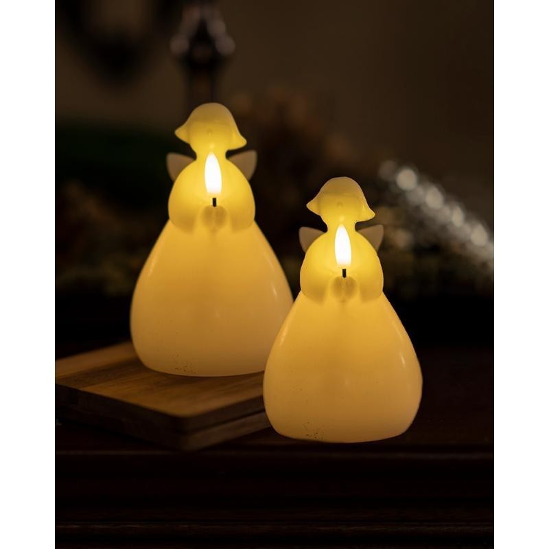 El ángel de Navidad Lucía está hecho de cera real. En el interior hay una luz LED y, cuando se enciende, irradia un color blanco cálido.