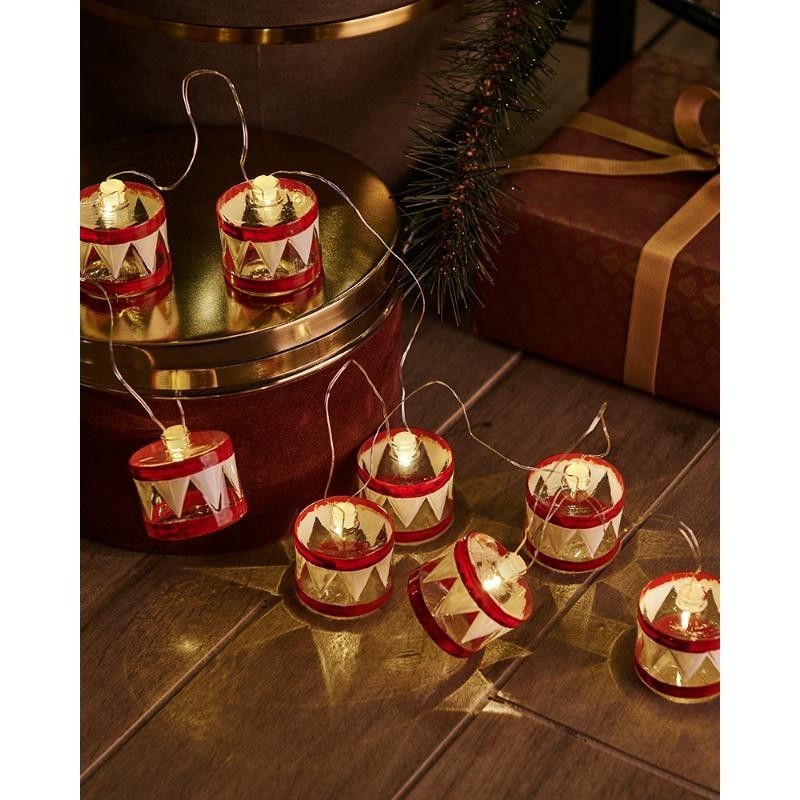 Guirnalda con 8 pequeños tambores pintados a mano con luces led. Longitud de 1.5m y