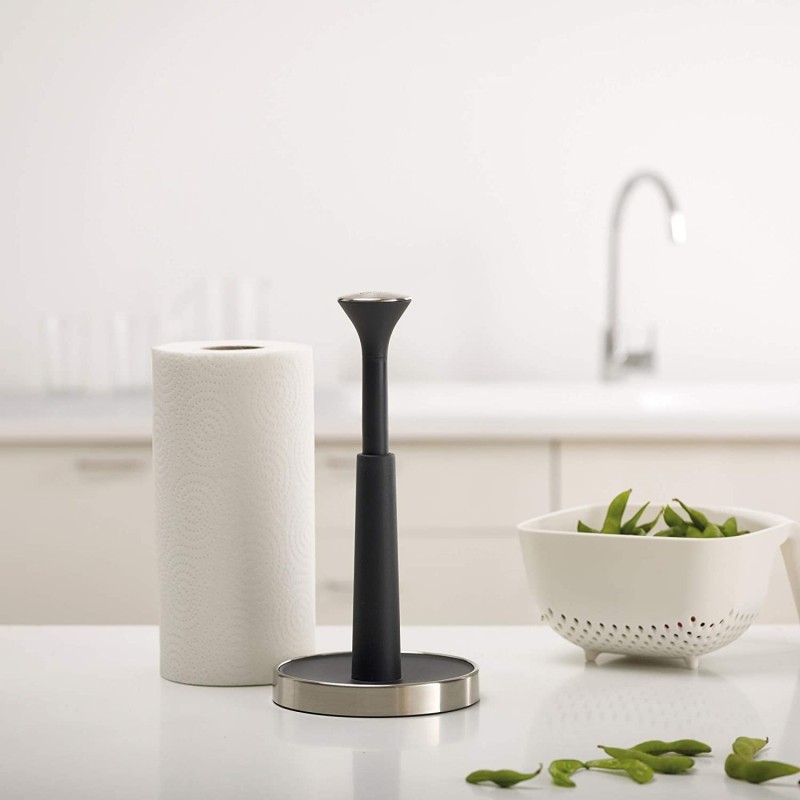 Base antideslizante Adecuado solo para rollos de altura estándar (hasta 24 cm).