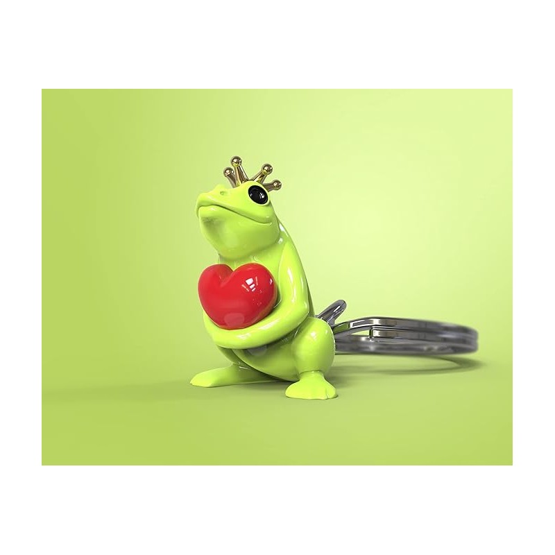 Este llavero 3D no solo es una linda rana que sostiene un corazón, sino que sugiere que quien te lo da es tu príncipe encantador.