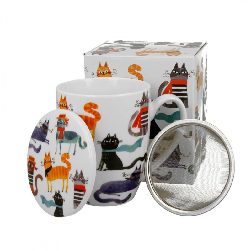 Una taza para té y hierbas que hará las delicias de cualquier amante de los motivos de gatos.
