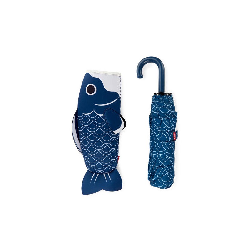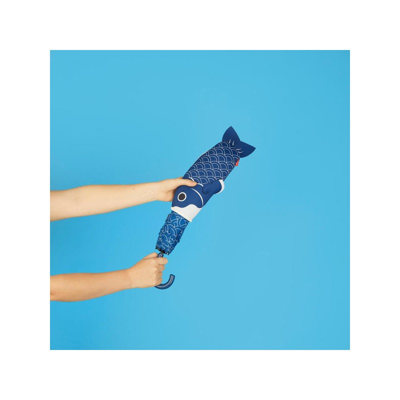 DISEÑO ORIGINAL. Paraguas de patrón gráfico que simula escamas de pez. Incluye una funda con diseño de carpa koi.