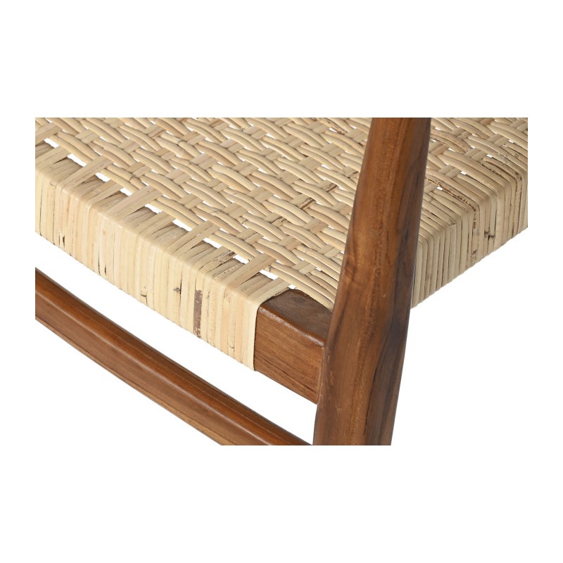Silla con reposabrazos madera maciza de teca y asiento de ratán