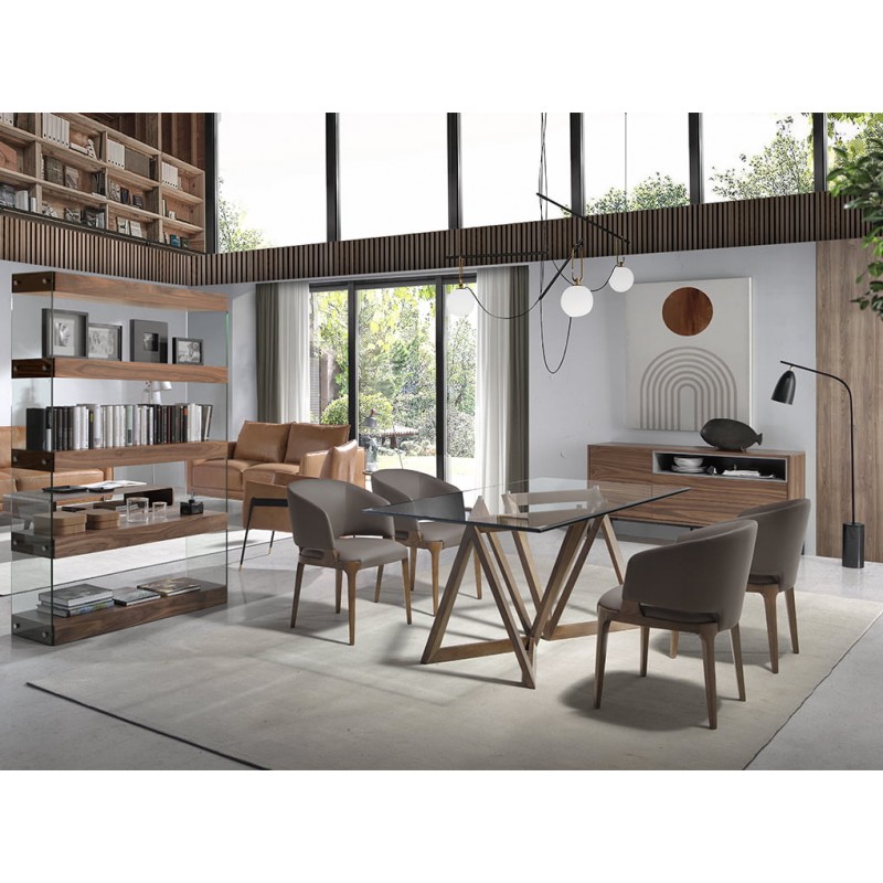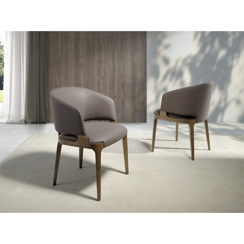 - La combinación del tapizado en polipiel con la madera color nogal de las patas, la hace una silla perfecta para aportar calidez y elegancia al espacio.