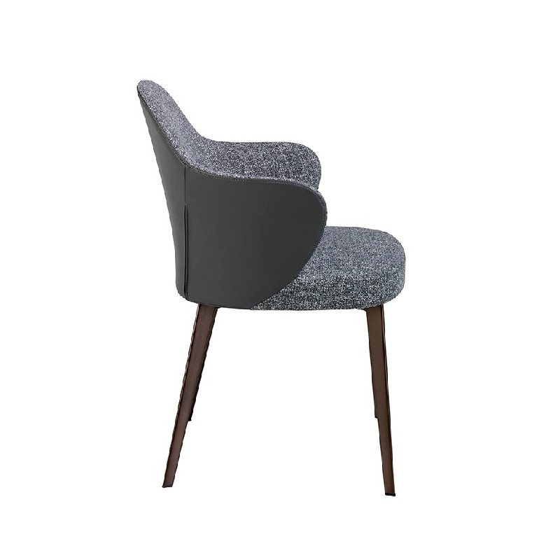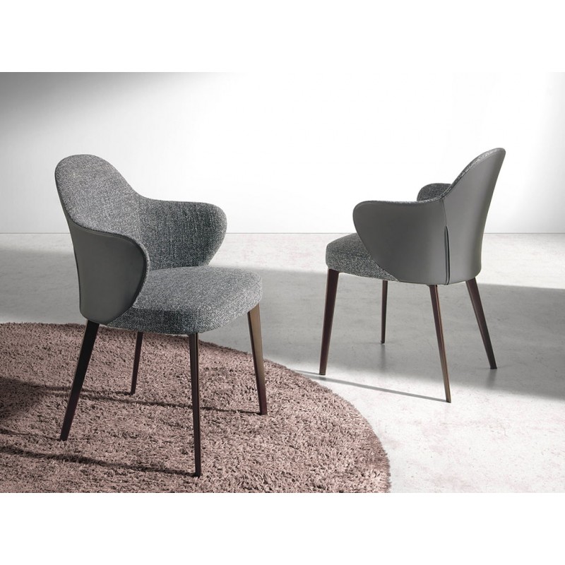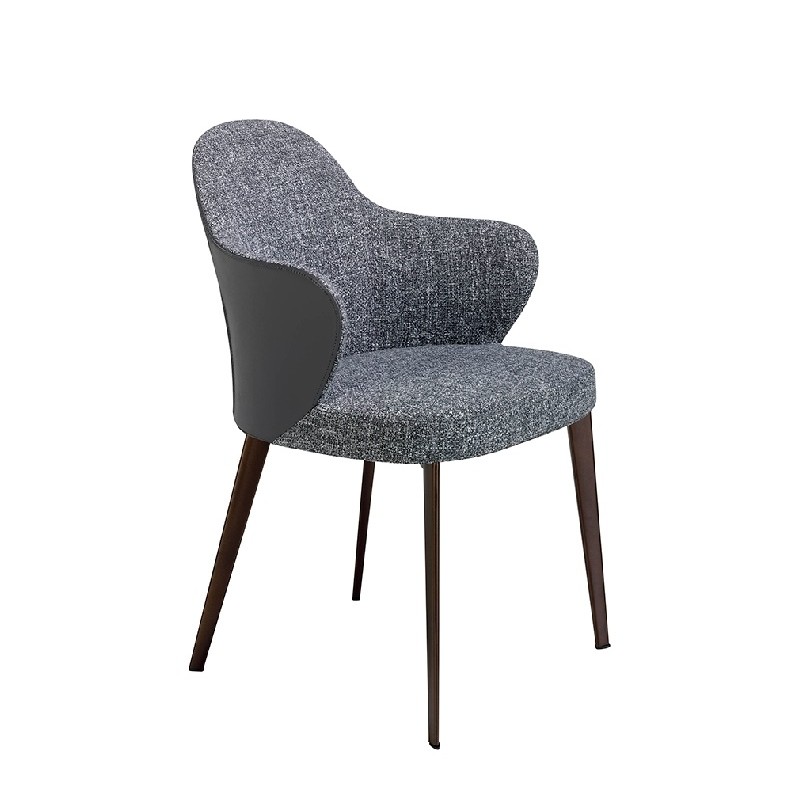 - Fiel a las últimas tendencias en decoración, la originalidad de su tapizado combinando tela y polipiel, es ideal para aportar el toque vanguardista y elegante que busca para su comedor.