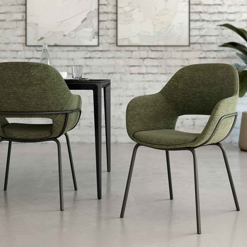 Con un tapizado con tejido water repellent suave y patas metálicas en color negro, esta silla combina estilo y durabilidad.