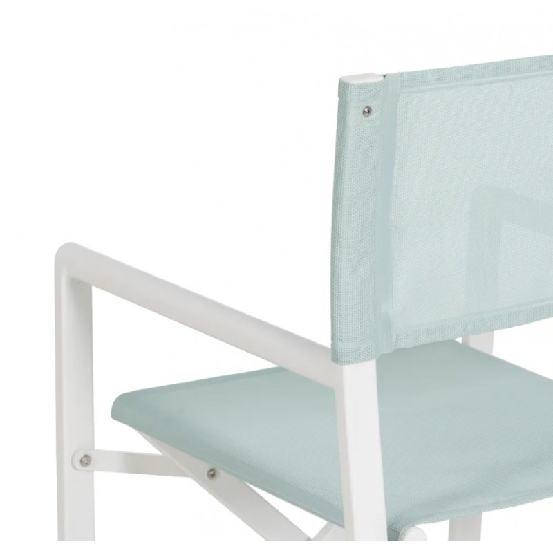 Material: estructura de aluminio, asiento y respaldo de textileno (30% hilo de poliéster, 70% PVC).