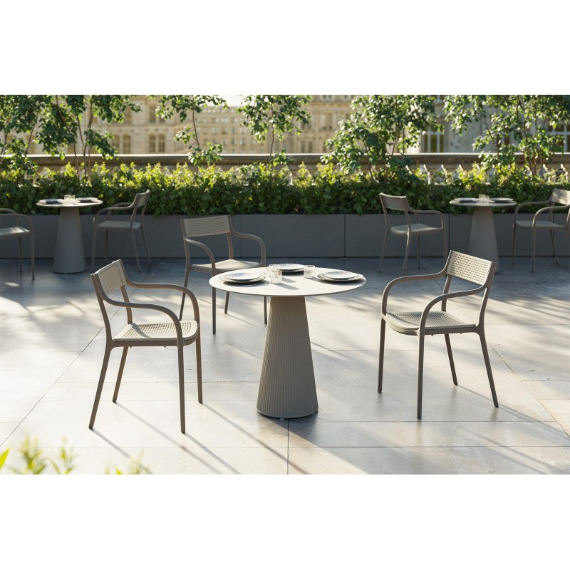 Sillón apilable con asiento y respaldo de resina, diseñados con una trama de puntos que favorece la ventilación. Diseñado por Eugeni Quitllet, el sillón Madison puntos forma parte de una colección inspirada en el ritmo cambiante de Manhattan. Su respaldo perforado mejora la ventilación y le da una identidad propia. Fabricado en resina resistente, es apto para interior y exterior. Su estructura ligera, combinada con un diseño ergonómico, lo convierte en una pieza versátil pensada para un uso prolongado en hogares y espacios de hostelería. Disponible en varios acabados y colores.