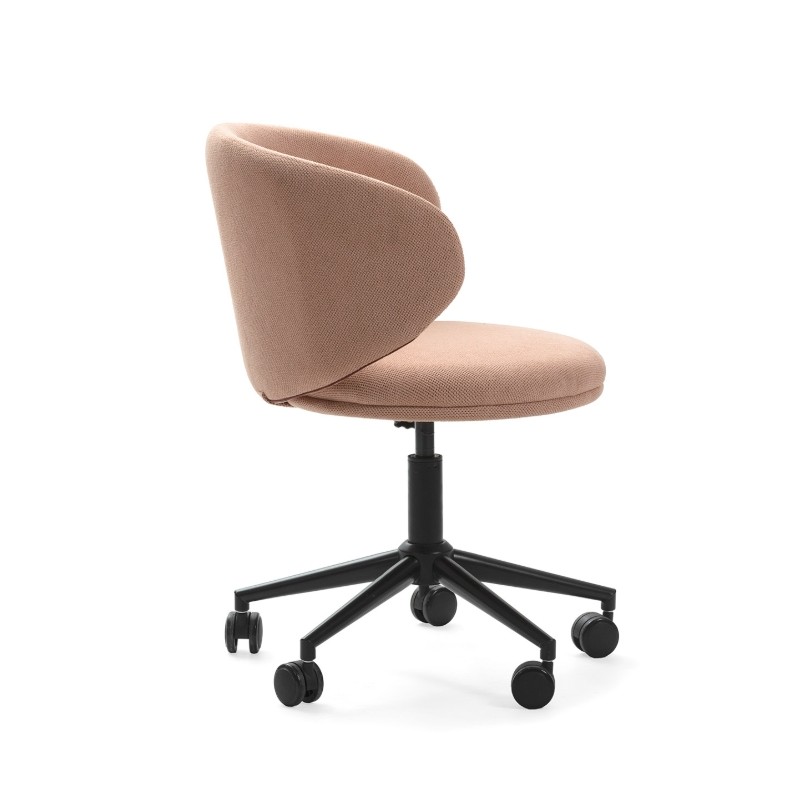 Silla de escritorio de altura regulable con pistón de gas. Asiento acolchado tapizado en 2 colores. gris oscuro y rosa